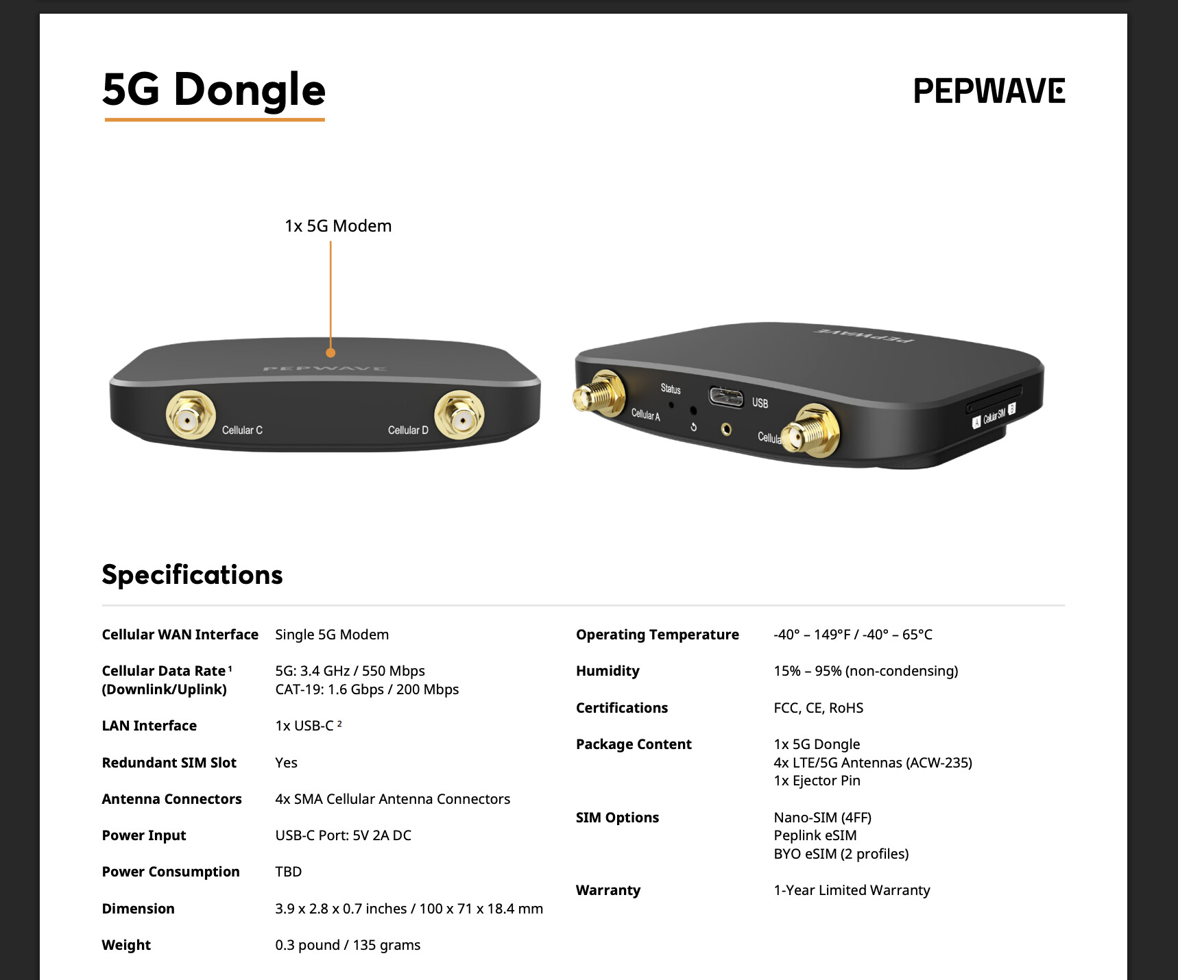 Great, thank you for letting us know. I was planning to buy a 5G dongle/adapter to extend capability of my Peplink MAX BR2 Pro via the USB port and this comes handy.