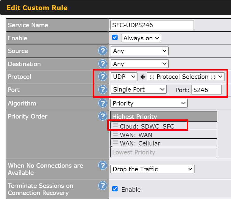 I assumed SFC provides Hot Failover for two internet connections (Satellite and cellular for me) and maintains session stability, meaning instead of switching IP addresses in failover my connection to remote things (servers) remains up and functioning. After reading for the DDNS piece, I’m beginning to question this assumption.