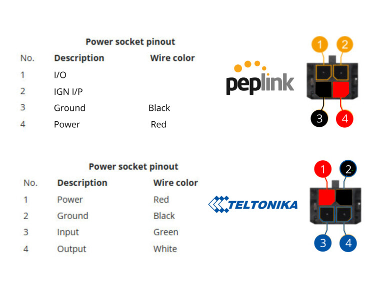 The pinouts on the RUTXR1 (and I assume all Teltonikas) are different to the Peplink pinouts.