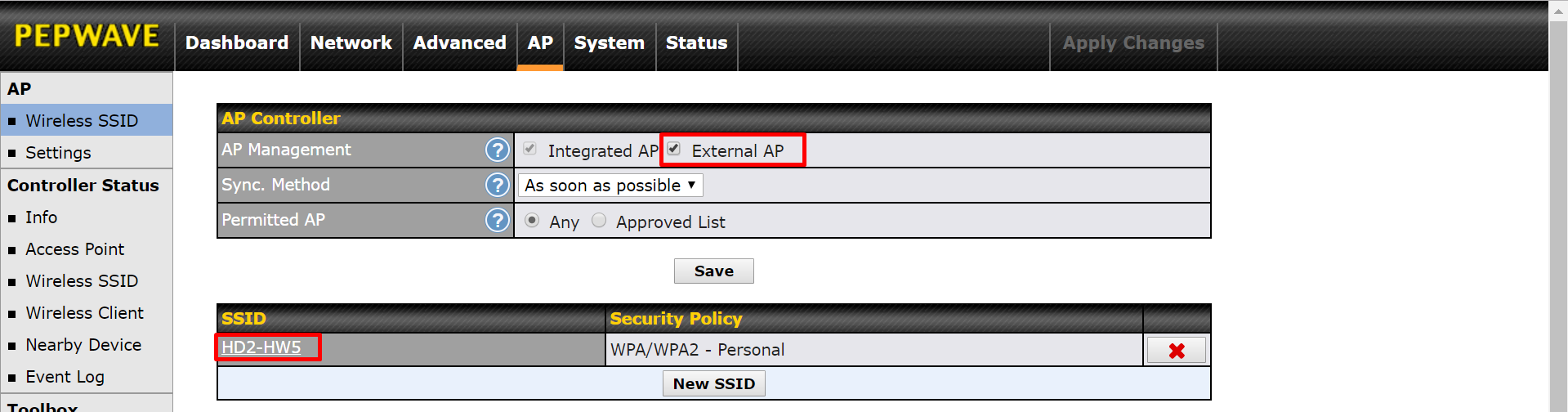- Checked “Integrated AP” on the HD2 under AP Controller