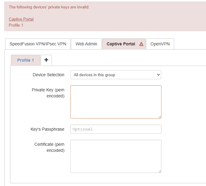 Now, as we already created a wildcard letsencrypt certificate for other manufacturers’ routers we employ or support I tried to leverage on InControl 2 Group Wide Certificate Manager to upload the same certbot generated privkey.pem and fullchain.pem in the relative fields but obtained an error.