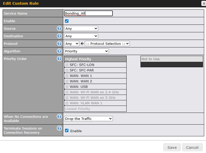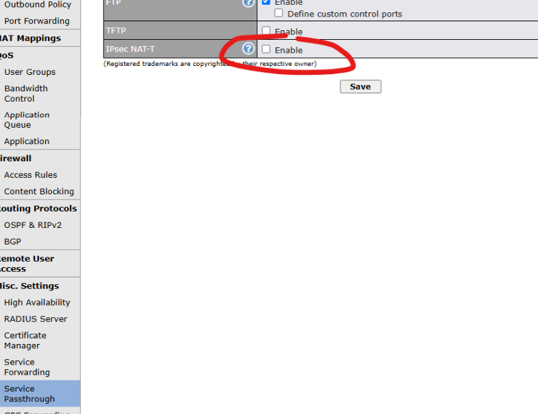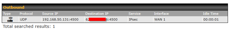 The customer has another Firewall/VPN device on the LAN side, which is creating a IPSec VPN. the idea is that it goes through the SFC tunnel, however I only see the session using one WAN, the outbound policy is set for all traffic to prioritise the SFC. any ideas?