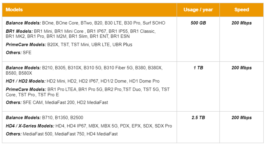 For example, if your device has 4 cellular modems and the plan you have chosen includes 100GB worth of SpeedFusion Connect 5G/LTE data. This 100GB will be equally distributed amongst the 4 cellular modems, assigning 25GB of data to each modem.