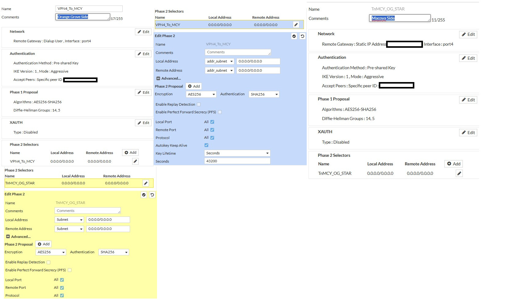 Okay, okay, I was mentioning the way you configured the VPN because, in my experience with Fortinet, if you don’t have firewall rules set up to allow VPN traffic, the VPN won’t establish. But since you mentioned that the VPN connects when you connect the Starlinks directly to the Fortinet, I don’t think that’s the issue.