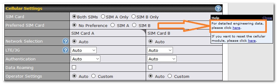 Scroll down to the “Cellular Settings” area and click on the question mark “?” to the right, then the link to enable detailed engineering data.