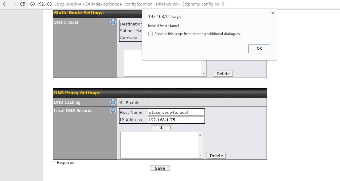 I am trying to add a host entry in the dns proxy settings but pep link is not accepting my host name, i also tried other host names but still the error is there.