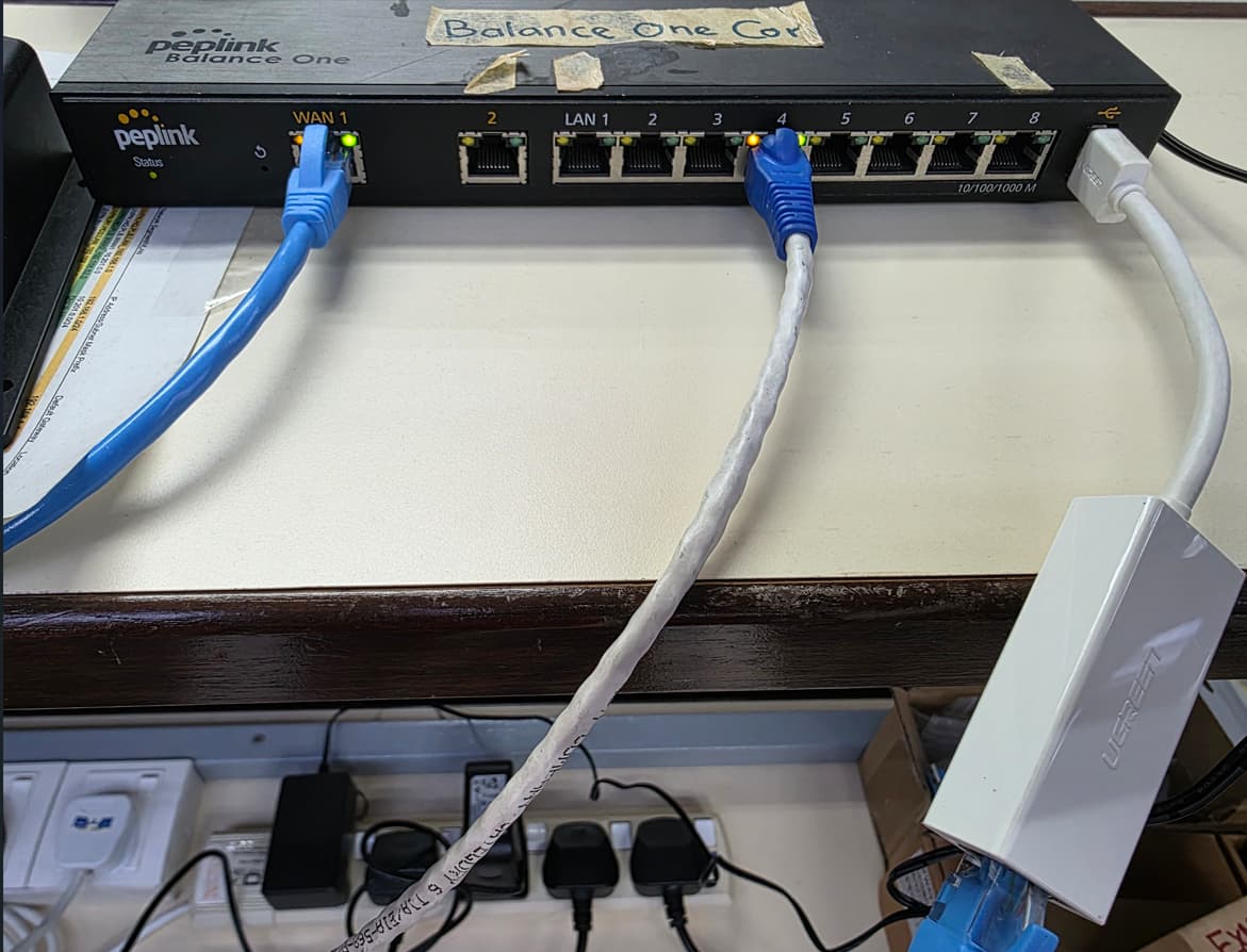 I have a quick setup with our lab unit (Balance One Core) with the special firmware, 8.5.3s042, I have no issue connecting a USB-Ethernet adapter, although it’s name as “Mobile Internet”…