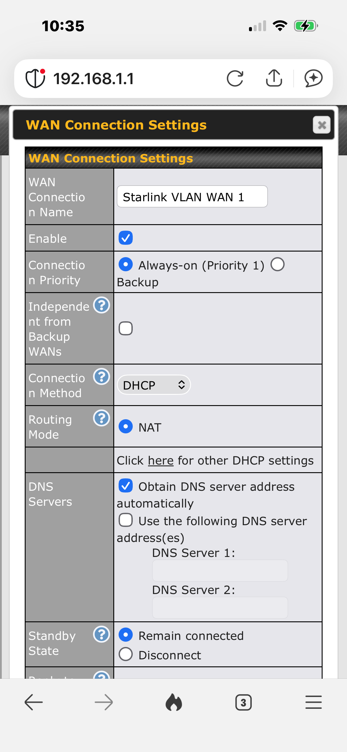On the barn side, I did the exact same thing (vs creating a separate VLAN with an IP) except I assigned that Reserved VLAN to port 3 as Access and plugged in the Starlink. I set port 4 to Trunk the Untagged LAN and Reserved LAN 10. The VLAN WAN is disabled still, but I guess once it builds Reserved VLAN 10 it doesn’t need to be active.