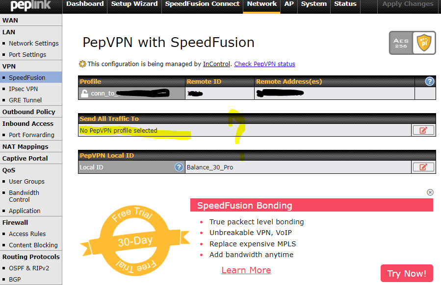 After I setup PepVPN, I did as testing an outbound policy in the Balance Pro Enforcing PepVPN WAN for one particular IP (my test PC).