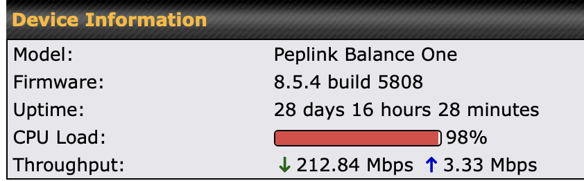 After getting the regional firewall rules working, unfortunately my poor old Balance One seems overwhelmed: