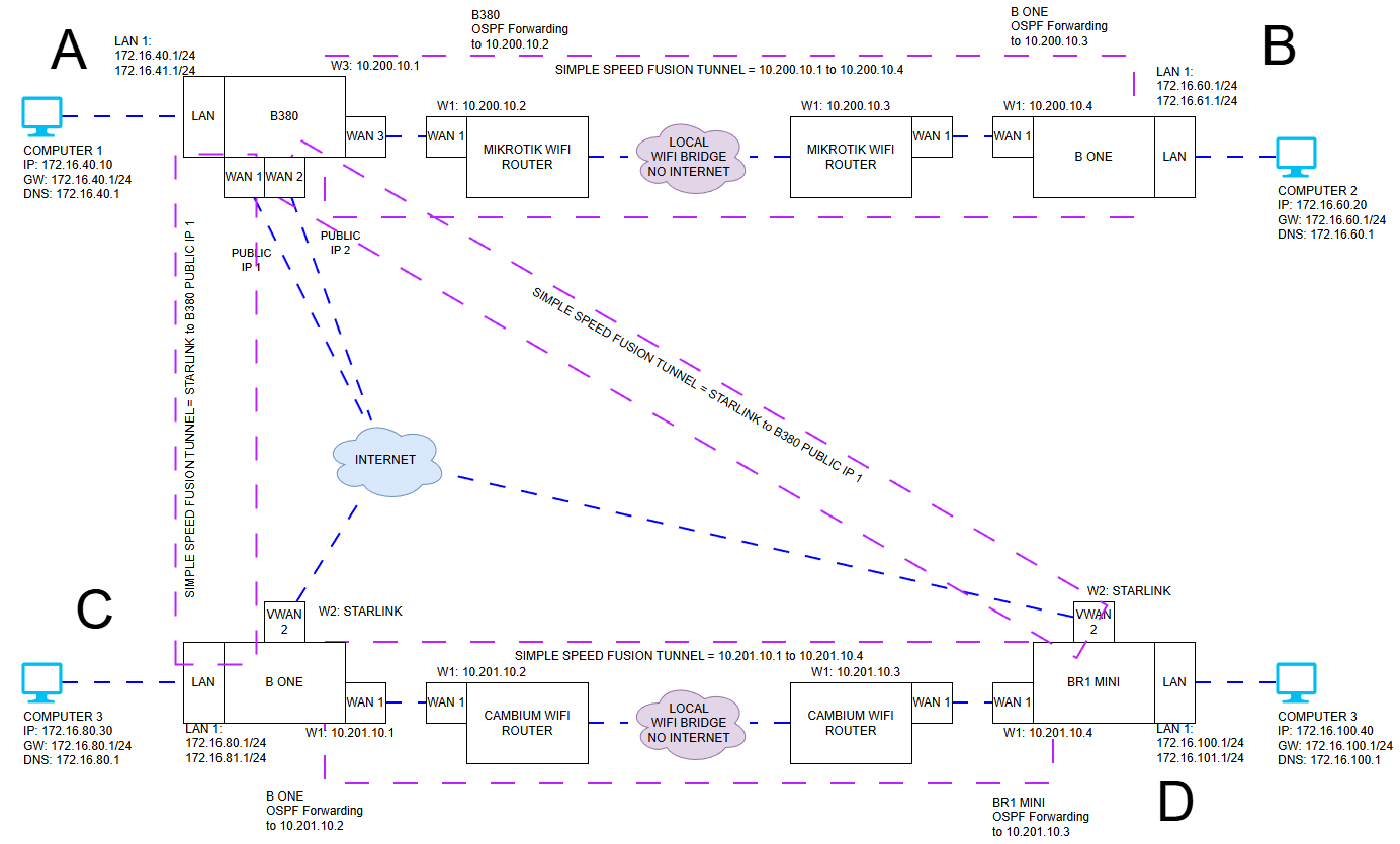 - Direct Starlink based WAN Smoothing between C and D using i2cdevice.mypep.link DDNS;