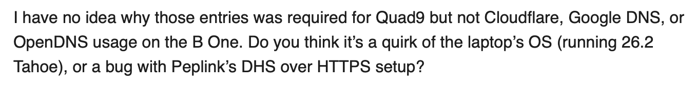 About me: I want to give you a sense of my knowledge and skills so you can tailor your responses appropriately. I’m not a network engineer, but I likely know more about setting up a secure and private small office/home office (SOHO) network than 90% of consumers.