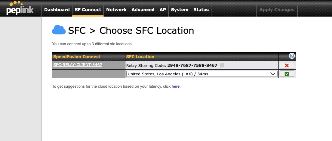 I’ve also configured the BR1 for relay mode - for inbound access using the closest SFC servers in DFW, but that doesn’t seem to do anything other tnan generate a new sharing code for the router.