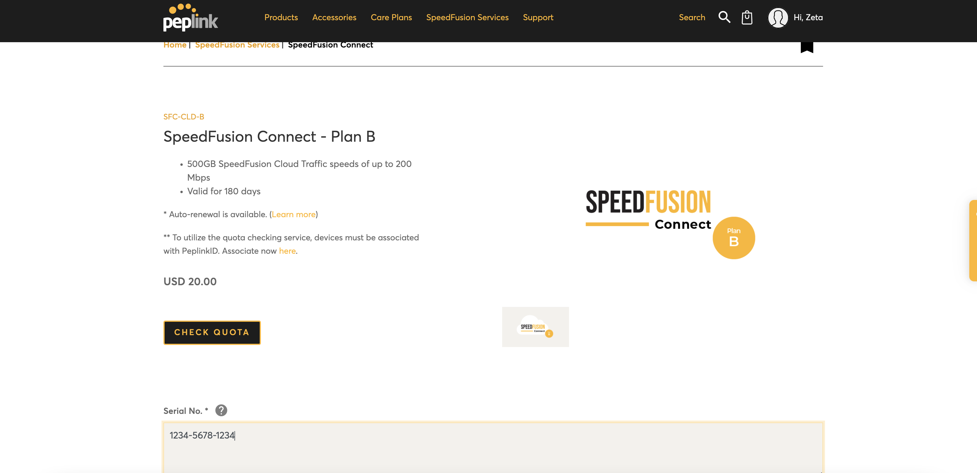 When I login to my Peplink|Pepwave Customer Portal it shows all my device information, and all previous orders which includes last year’s SpeedFusion Plan B subscription.