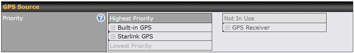 Peplink seems to have added the GPS priority settings that were discussed in recent firmware versions, as I have options to set Starlink GPS as a higher priority under Advanced → Misc. Settings → GPS.