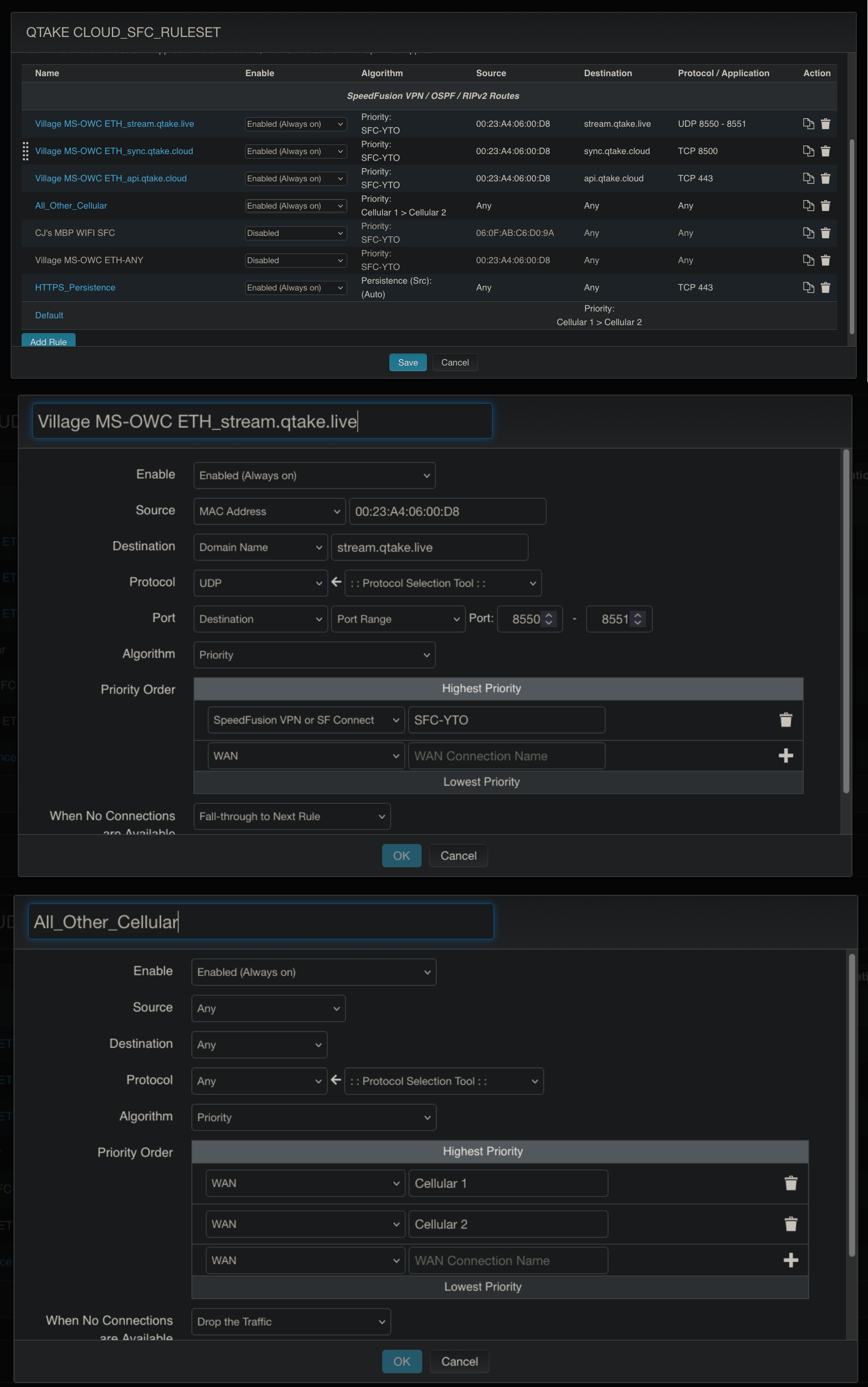 running 2 sims in a Max BR2 Pro for live video stream uplink in QTake. Speed Fusion Cloud [SFC] is working and the video stream works however i cant seem to exclude the rest of the traffic from my computer from hitting SPF. everything seems to be using the SFC Interface when i view my Active Sessions. i would like all other traffic to simiply go through SIM A or B without using speedfusion data