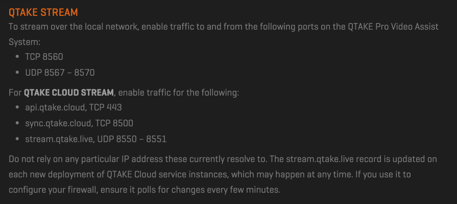 using ethernet card mac address as the source for the livestream SPC policy. i’ve followed the QTake port guidlines for stream traffic.