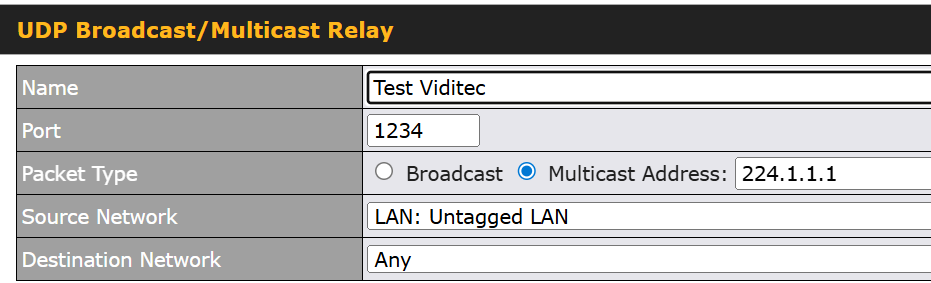 We have an Elemental Technologies Video encoder , it´s encoding an UDP stream at 224.1.1.1:1234 , connected to a Max Transit Duo Pro at LAN 1 , configured via VPN Speedfusion to a Balance 380 , I can ping every device in the network ( local and remote devices ) , but I can´t see the UDP stream in any notebook connected to the Balance 380 . Does the VPN admits UDP traffic ? Is there a method for config that ? Can anybody help me on this matter ? Thanks