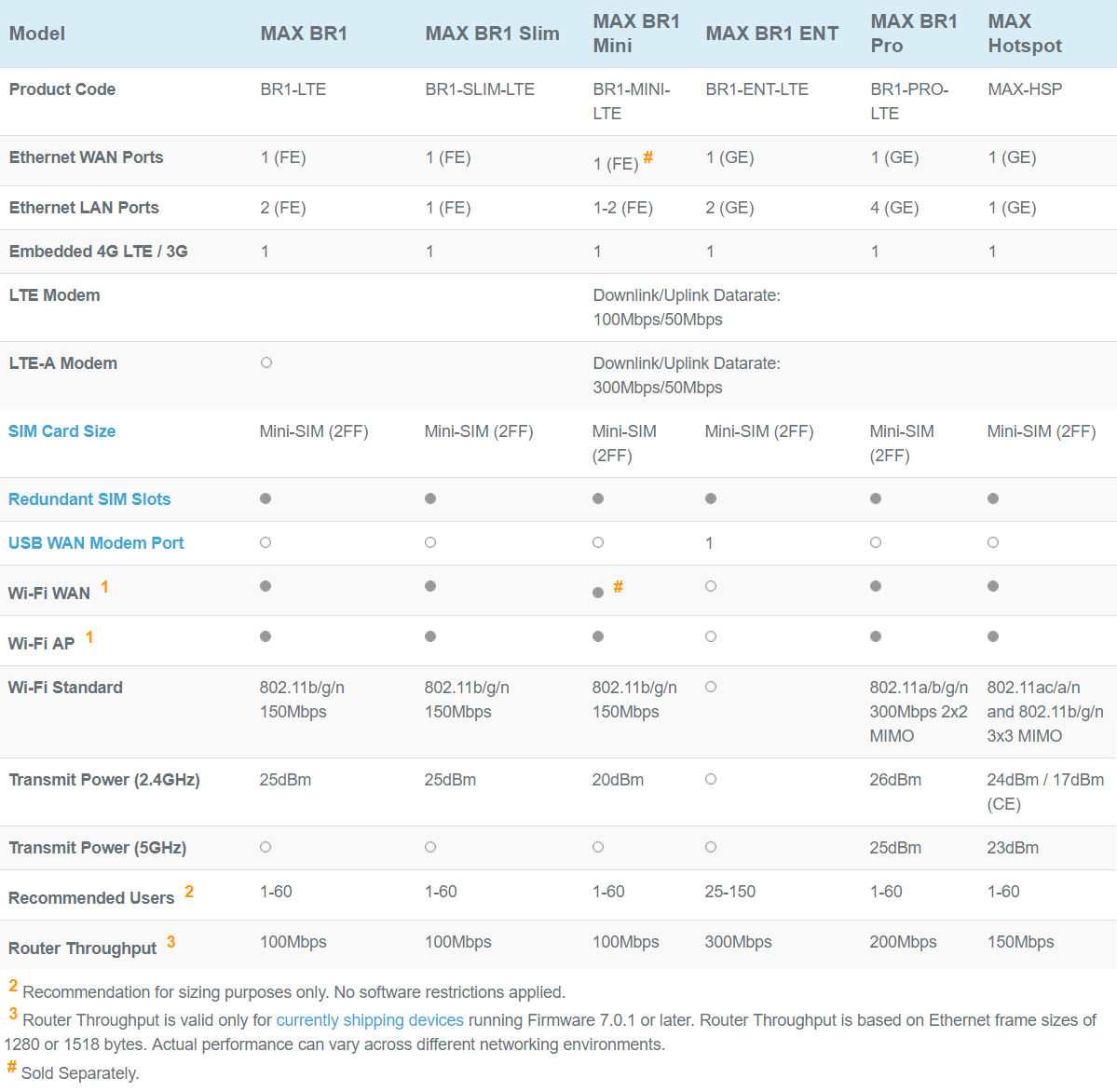 I’ve edited down the Pepwave MAX single cellular comparison matrix for you: