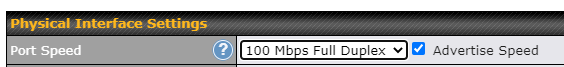 Edit the WAN settings and manually select 100 Mbps Full Duplex under Physical Interface Settings: