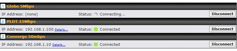 Hello Sir Martin, thanks for your response. I’ve also tried changing from static to DHCP but it takes too long connecting. I haven’t seen it being connected, it’s just loading. I’ve tried other routers like dlink, tp link as alternative to Peplink using also the LAN1 of Globe modem and it works.